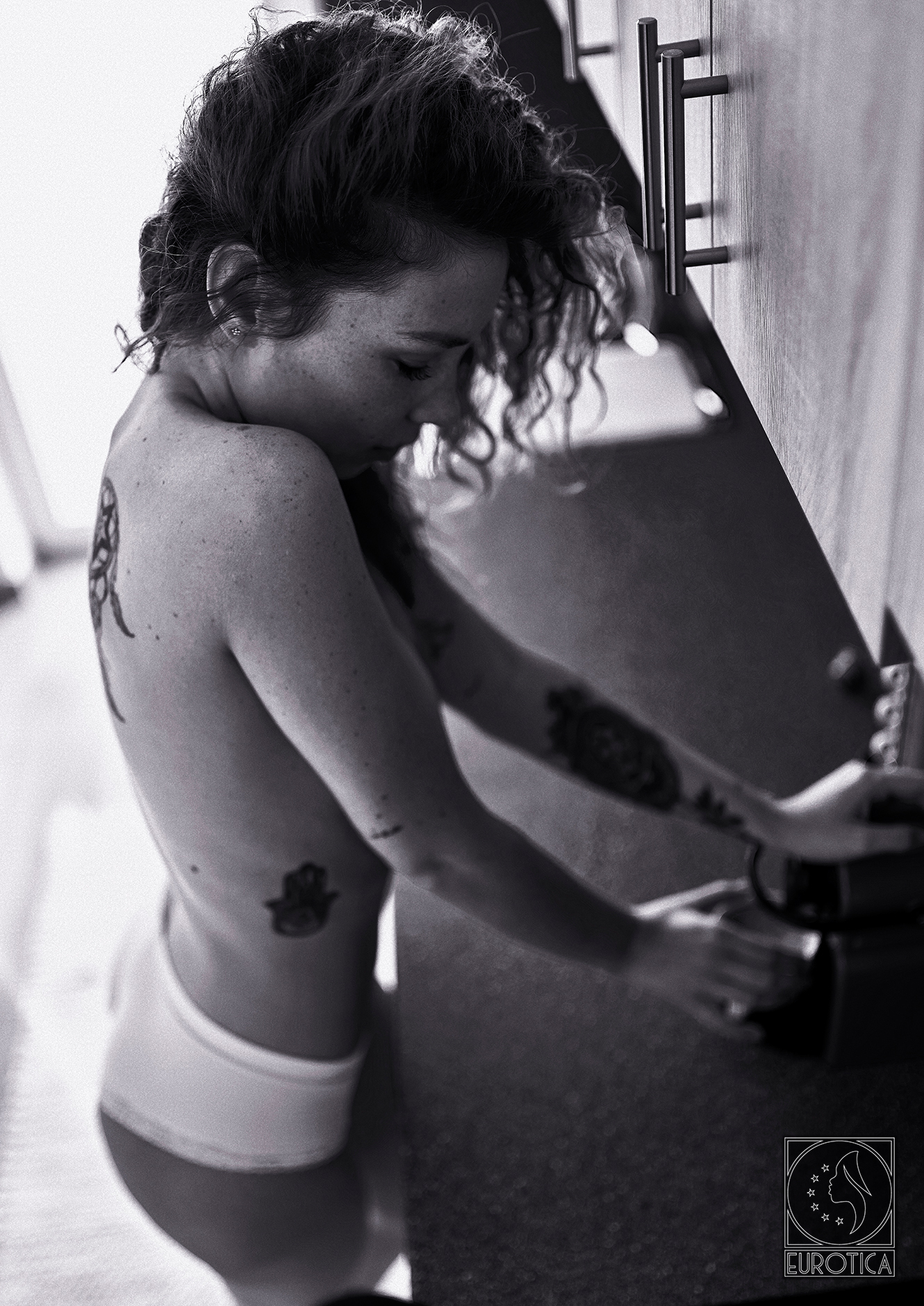 In the intimate setting of Rina's own kitchen, we are granted a glimpse into the private world of this captivating 27-year-old model. With her red hair, green eyes, and tiny freckles that dot her soft skin, Rina exudes a natural charm that is as enchanting as it is alluring. What sets her apart is not just her physical beauty, but also the personal connection she shares with photographer Renzo, her partner in both life and art. Clad in nothing but a top and panties, Rina's radiant beauty shines, as the morning sunlight filters through the windows. She poses gracefully, her every movement a study in sensual elegance. Despite this being her debut content as a model, Rina exudes a natural ease in front of the camera, her poses both natural and effortlessly sexy. As she slowly undresses, revealing more of her flawless form, she maintains a sense of modesty, delicately covering the most intimate parts of her body with her hands. As we watch Rina's morning routine unfold, we can't help but be captivated by her beauty and charm. As we eagerly anticipate her next content, we can only hope that she will share more of herself with us, revealing the full extent of her undeniable allure.